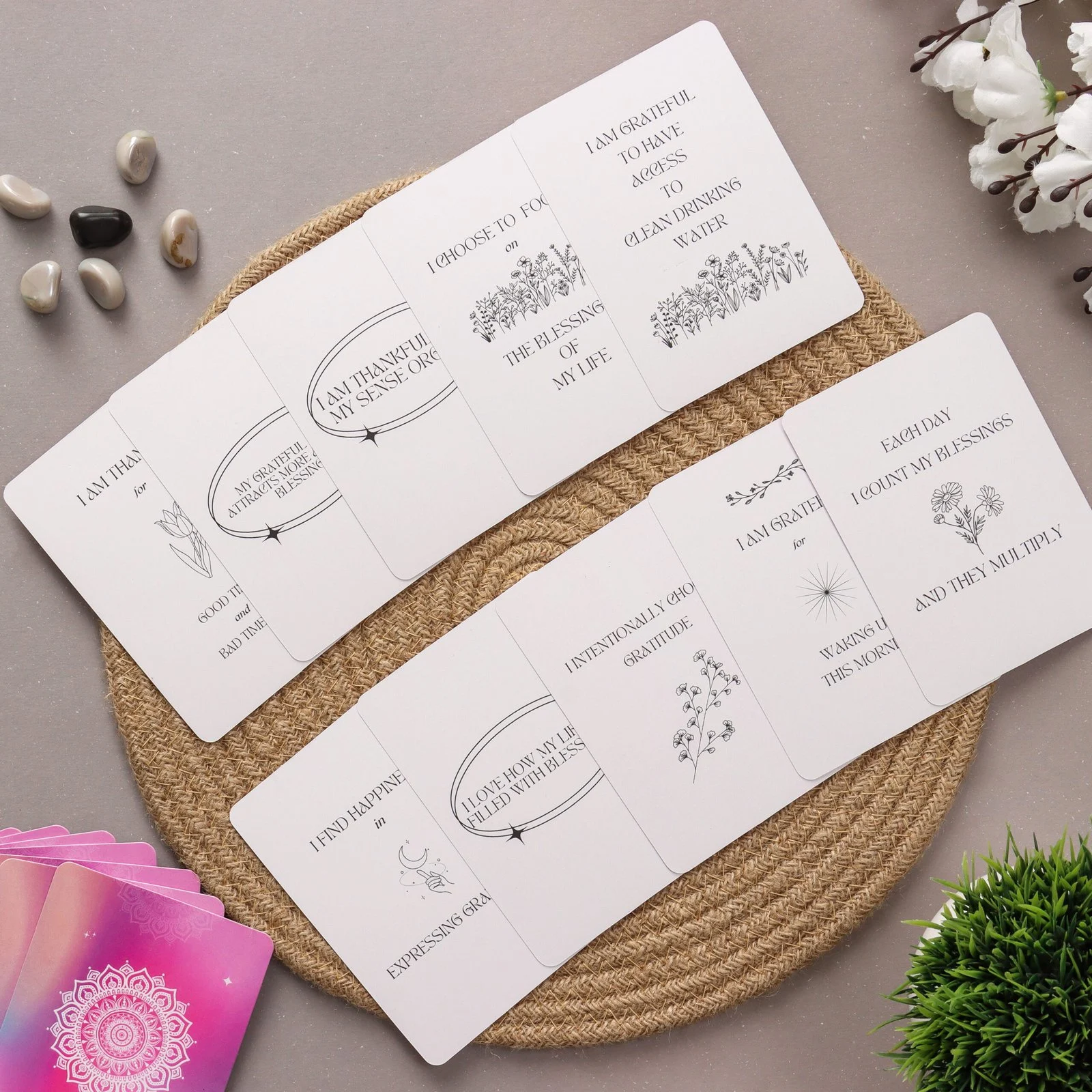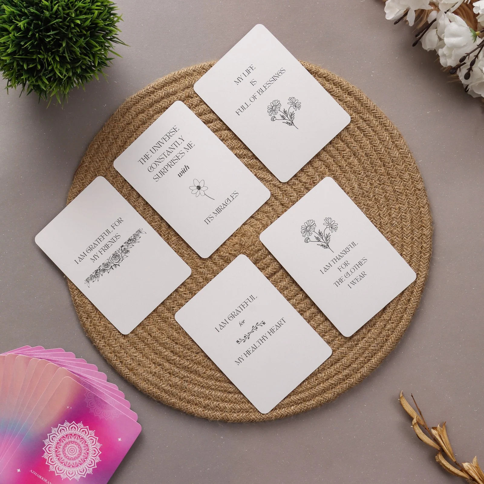 Embrace the power of gratitude and cultivate a thankful heart with our Gratitude Affirmations Deck. Let each card inspire you to express gratitude for the abundance present in your life, fostering a deeper sense of contentment, joy, and fulfillment with each moment you cherish.