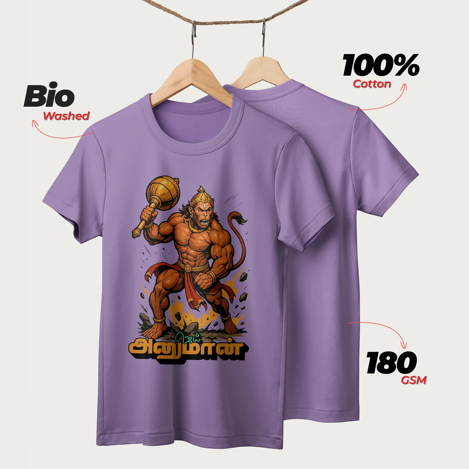 Jai Hanuman | English | Unisex T-Shirt | 100% Cotton | Regular Fit | Spiritual Graphic Tee