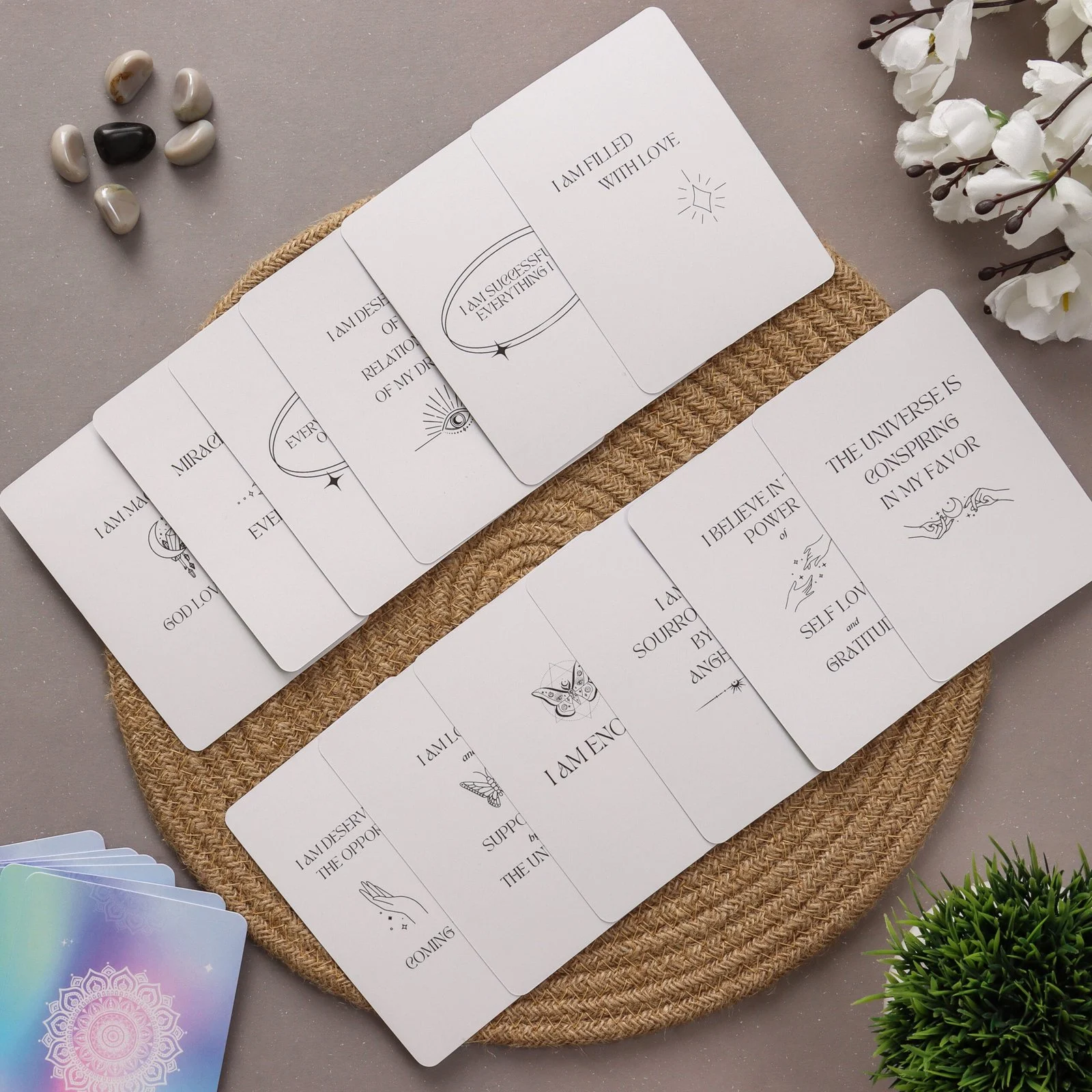 Empower yourself with the transformative power of positive affirmations with our Positive Affirmations Deck. Let each card inspire you to embrace a more optimistic outlook on life, cultivate self-confidence, and unlock your full potential as you journey towards a brighter and more fulfilling future.