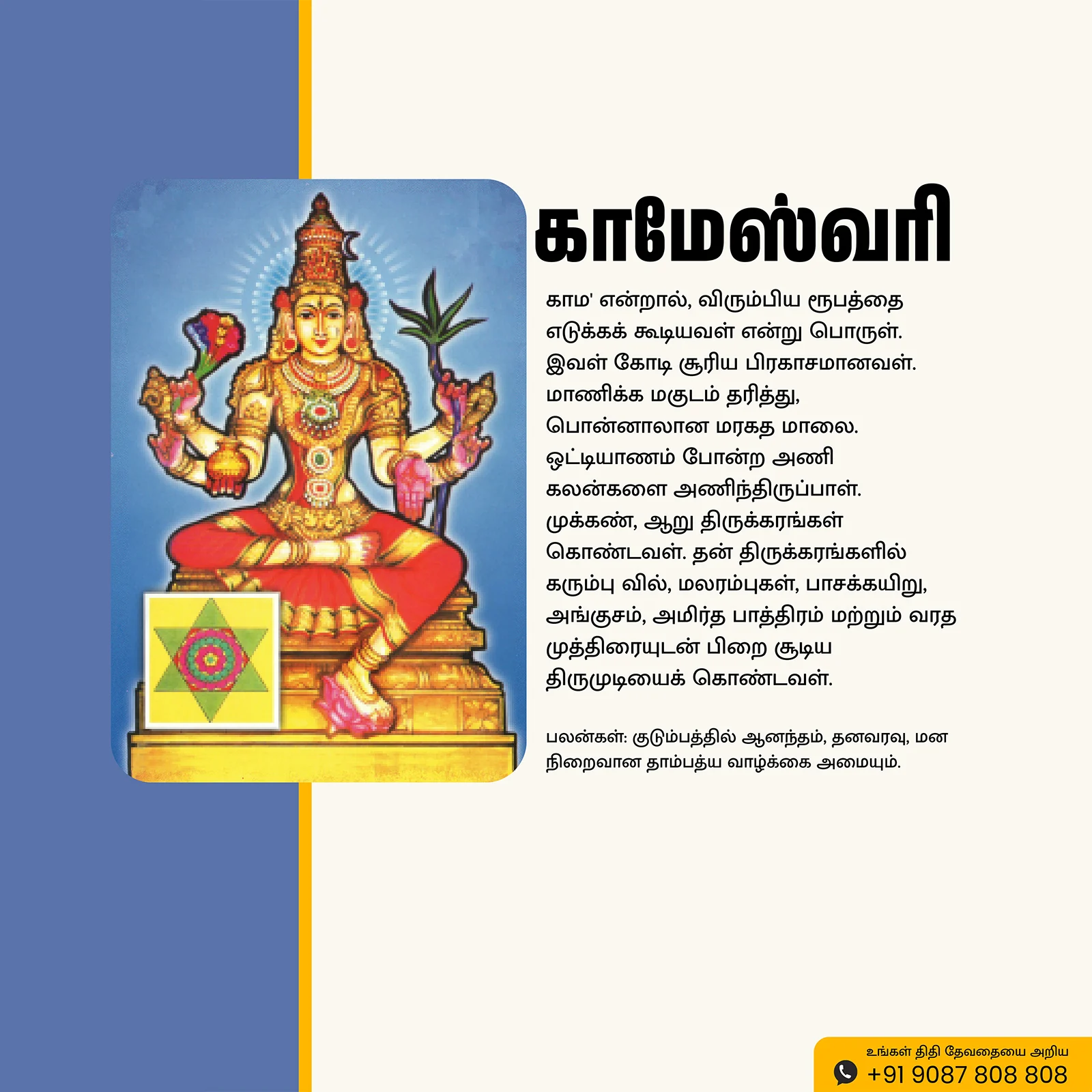 Sri Kameshwari | Thithi Devathai | Energized Powerful Photo Frame | 6×8 inch